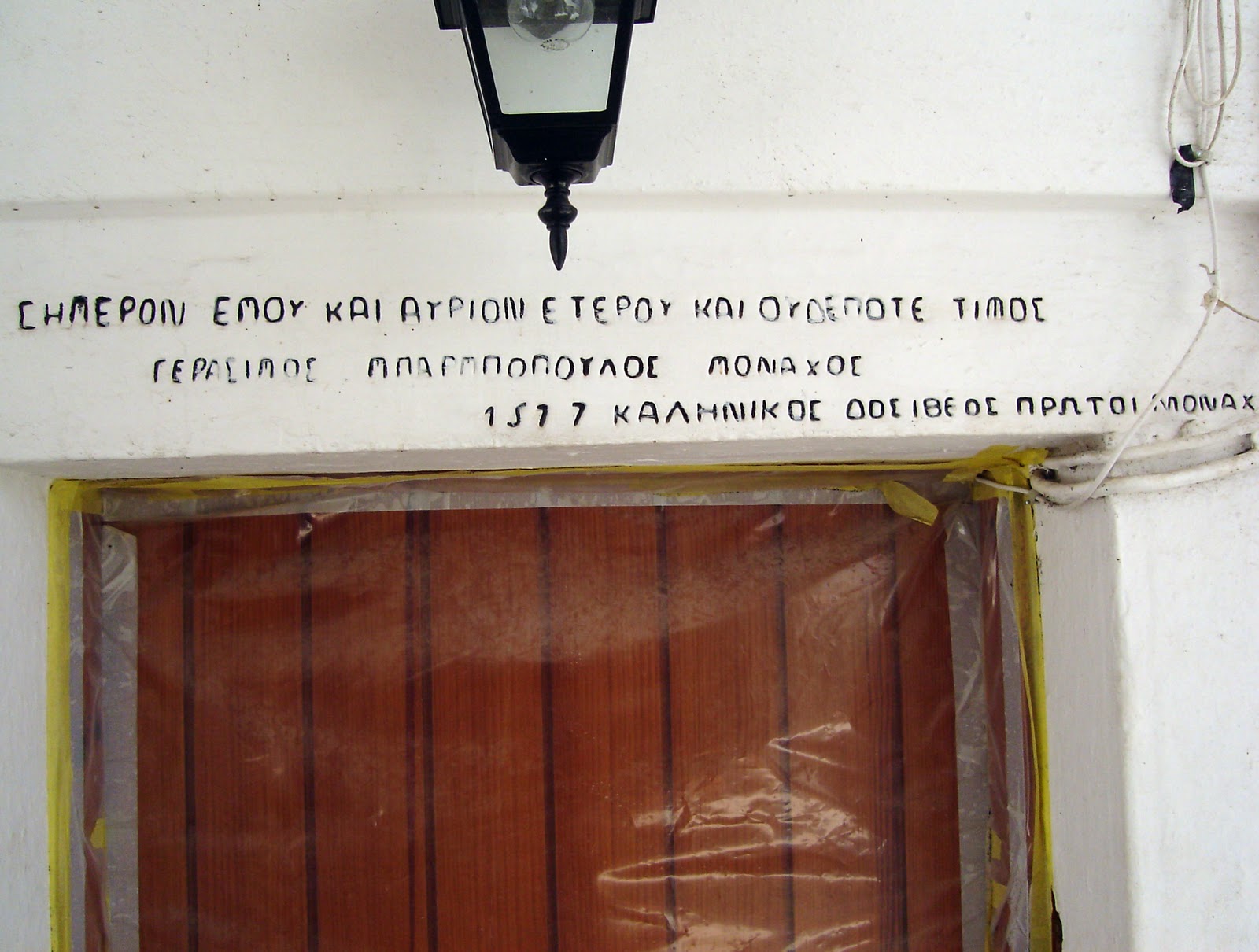 Επιγραφή πάνω από την πόρτα κελλιού στην Ι. Μ. Παναγίας Έλωνας Κυνουρίας. Νά’ χαμε τέτοιο φρόνημα στην ζωή μας, πόσο πιο εύκολη, ευλογημένη και ειρηνική θα’ τανε…